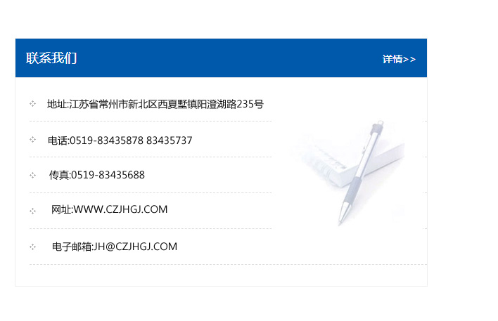 傳真:0519-83435688    郵編:213135    網址:WWW.czjhgj_com.zhbxj.com    電子郵箱:JH@czjhgj_com.zhbxj.com
